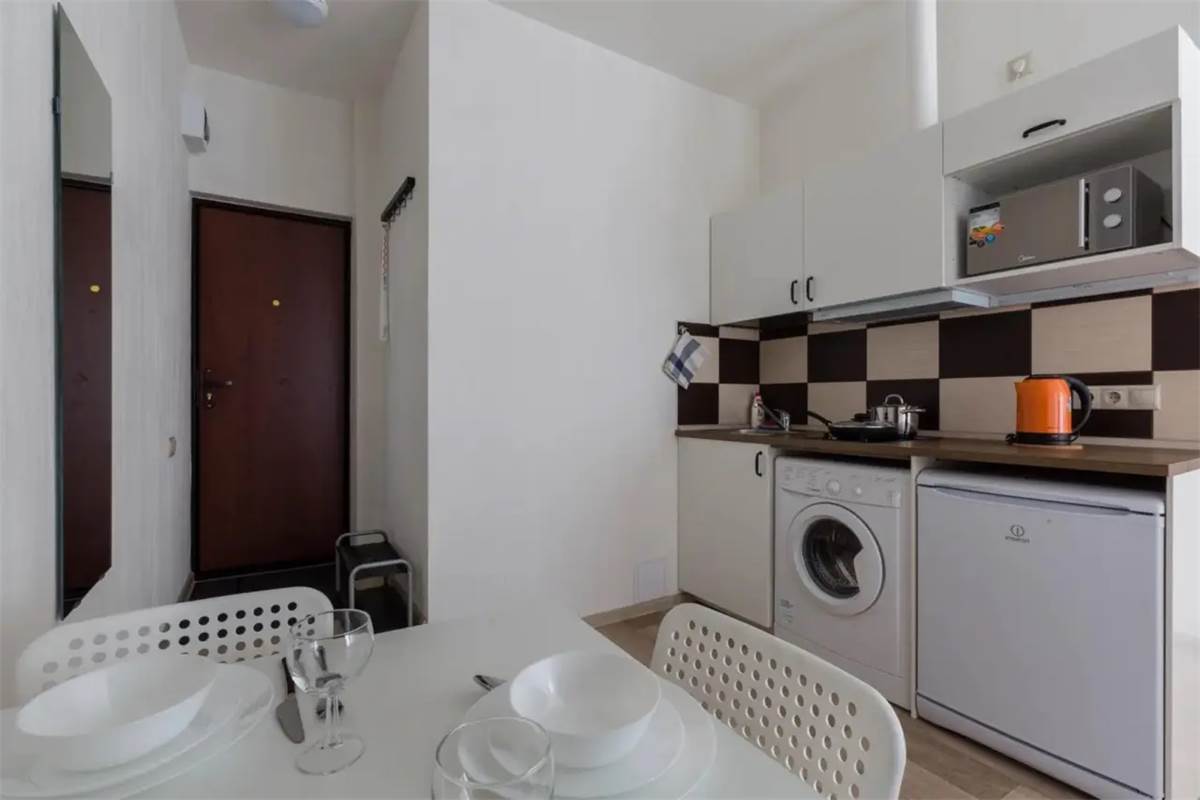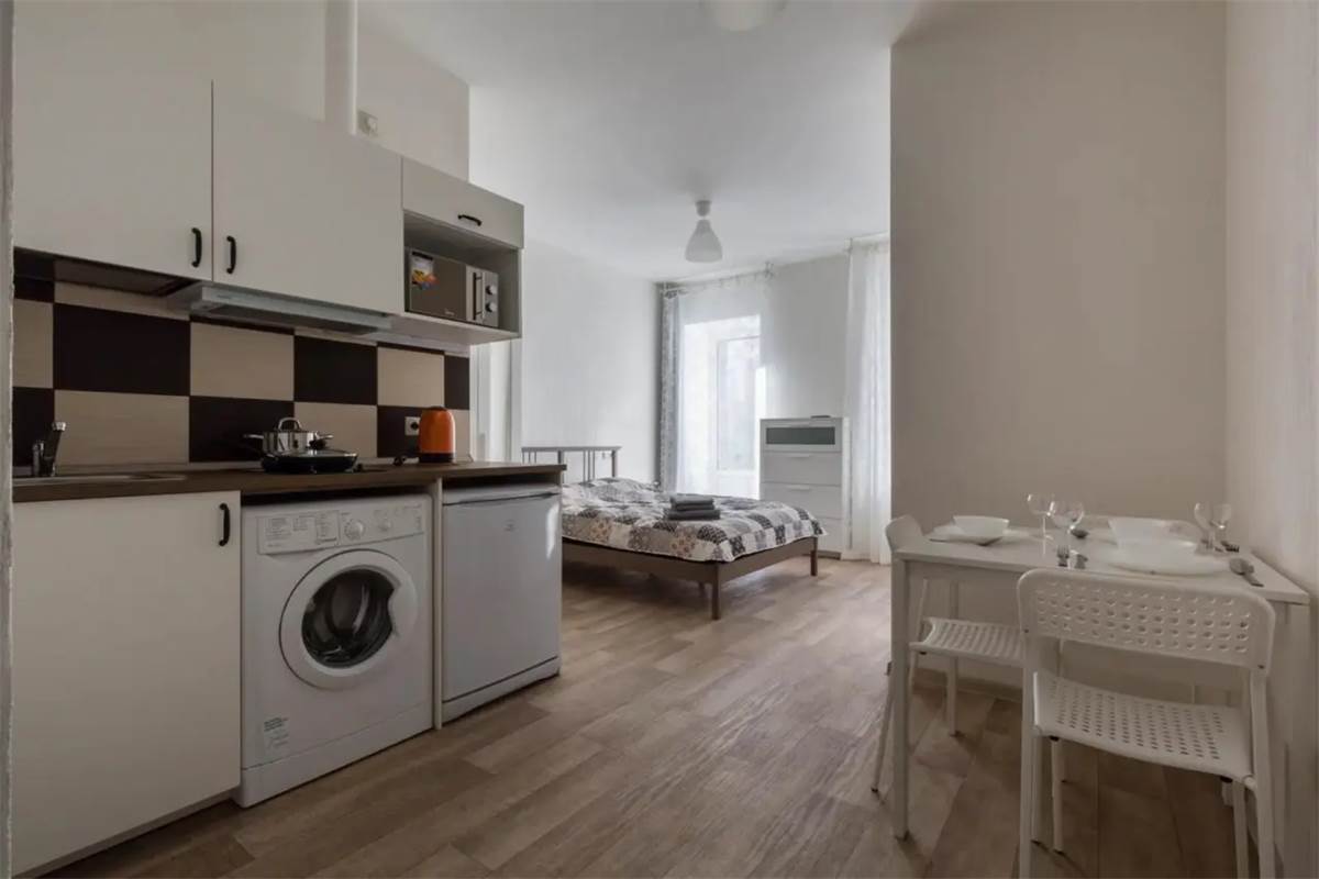 Светлые студии с большими окнами в Санкт-Петербурге. В каждой квартире есть все, что нужно для комфортного проживания: спальные места, постельное белье и полотенца, посуда, микроволновка, телевизор, Wi-Fi, холодильник. Правила проживания с животными: - при проживании с собаками до 10 кг взимается залог 3000 руб. - проживание с кошками и собаками более 10 кг взимается залог 5000 руб. Для гостей, путешествующих на автомобиле имеется городская парковка бесплатная с 20.00 до 08.00 и платная с 08.00 до 20.00. В